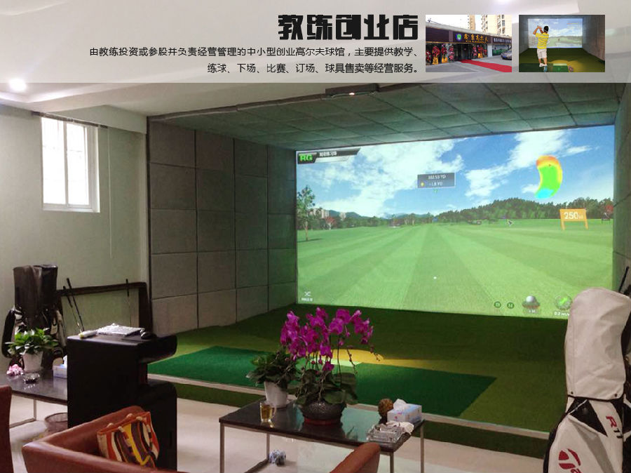 如歌高爾夫模擬系統,給室內高爾夫球館投資者提供了多種投資方案,除室內高爾夫俱樂部、生活館、主題配套等常見的投資模式外,如歌高爾夫還提供了教練創業店投資模式。
